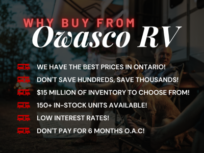 Owasco RV Centre is not responsible for any misprints, typos, or errors found in our website pages. Any price listed excludes sales tax, registration tags, and delivery fees. Manufacturer pictures, specifications, and features may be used in place of actual units on our lot. Please contact us @905-697-0678 for availability as our inventory changes rapidly. All calculated payments are an estimate only and do not constitute a commitment that financing or a specific interest rate or term is available.