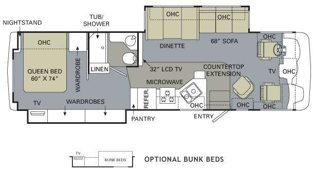 Standard Run Savings Package: Film Front Protection Mask, Hardwood Raised Panel Doors on Refrigerator, 3-Camera Rear Vision System, Central Vacuum System, Front Living Room DVD Player, RV Sani-Con 2 System, 12V Heater in Wet Bay